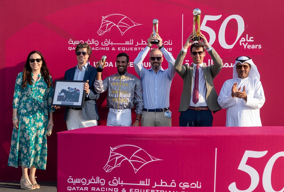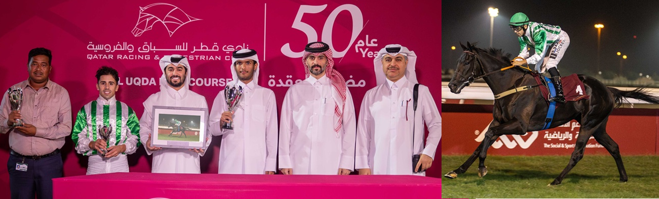 بفارق 3 أطوال، لتضيف الفوز الثاني على التوالي في السباق للمالك وذنان ريسنغ والمدرب ألبان دو ميول والخيال جيمس دويل، كما احتفظت المهرة الحمراء بقبضة هذا الثلاثي على نفس اللقب للسنة الثانية على التوالي بعدما حققوه مع المهرة “ديفانا شيكا” (مجد العرب) العام الماضي، وشهد الشوط أيضاً إحراز المالك والمدرب ثنائية المركزين الأول والثاني بحصول “انتصار دو مونلو” على الوصافة.