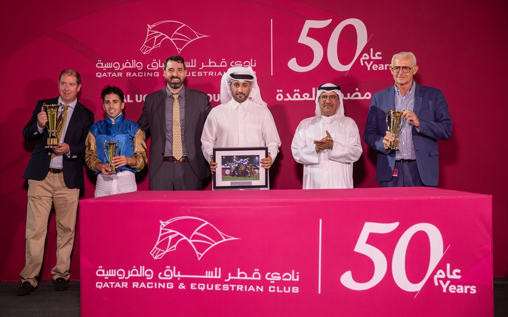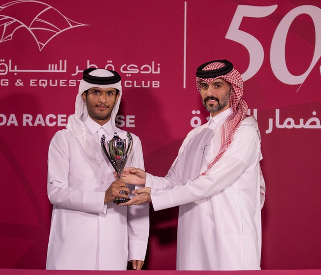 توج الفائزين السيد سعد علي الكبيسي، نائب مدير إدارة التسجيل وكتاب الأنساب بنادي قطر للسباق والفروسية.