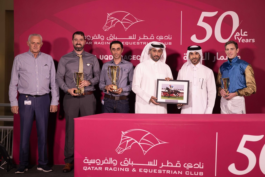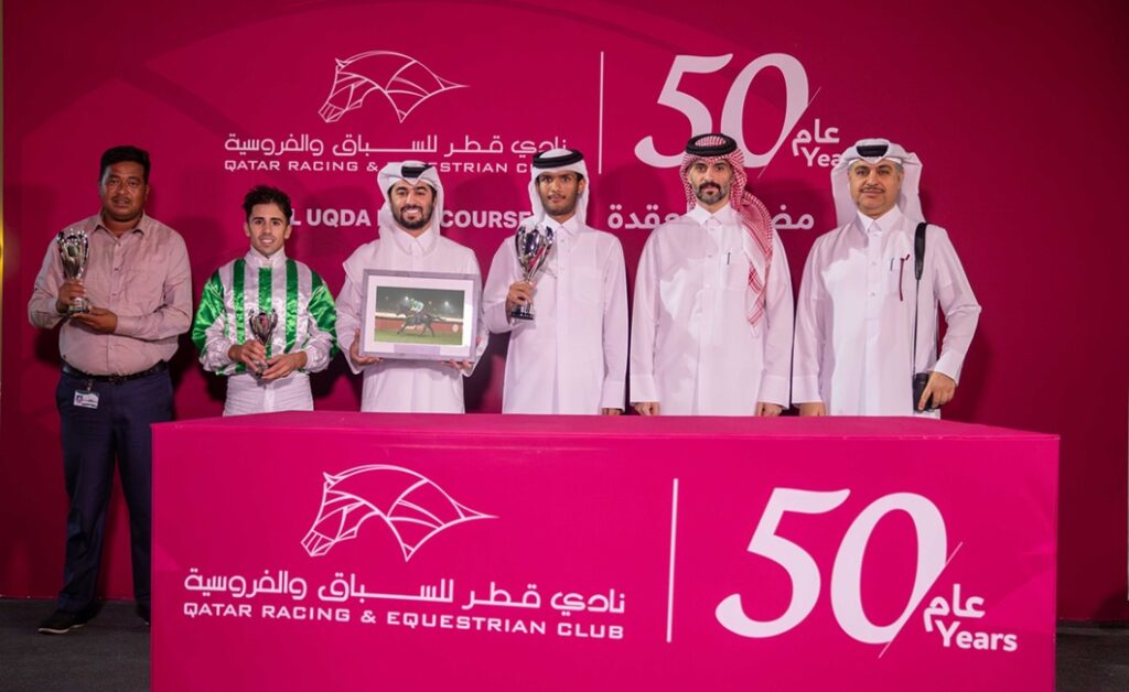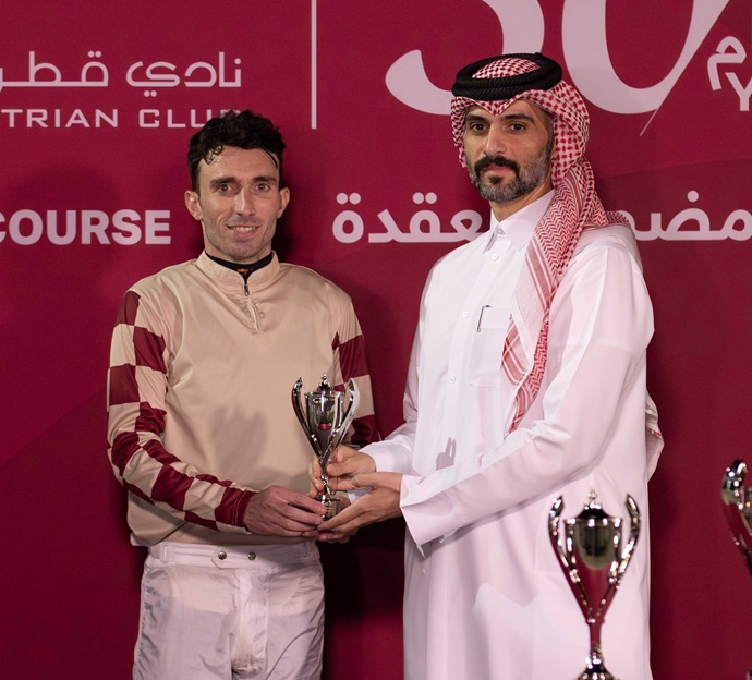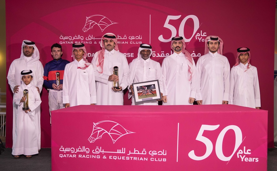 توج الفائزين السيد راشد سعيد عضيبه، رئيس قسم تنظيم السباقات بنادي قطر للسباق والفروسية.