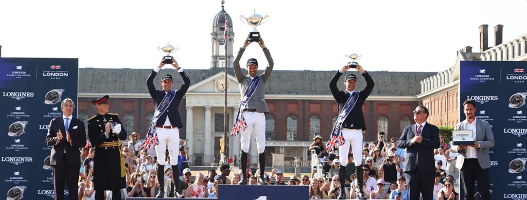 شهدت الجائزة الكبرى لتاسع جولات لونجين العالمية لأبطال قفز الحواجز في لندن والتي نفدت تذاكرها بالكامل، إثارة كبيرة في أمسية عالمية لا تنسى،حافلة برياضة عالية المستوى، وأجواء حماسية، وإثارة وتحد من الأبطال الذي تفوق عليهم الفارس الألماني كريستيان كوكوك وشريكه الأسطوري الحصان “تشيكر 47 ” بعد أداء راق حقق فيه الأثنان زمنا قدره 40.41 ثانية دون أخطاء في جولة التمايز ليحصد جائزة مالية قدرها 165 ألف يورو من إجمالي 500 ألف يورو قيمة الجائزة الكبرى والتي تنافس عليها 34 فارس وفارسة على إرتفاع 160 سم.