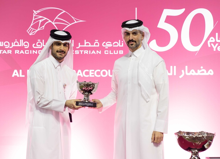 عقب السباق توج الفائزين السيد راشد سعيد عضيبه، رئيس قسم تنظيم السباقات بنادي قطر للسباق والفروسية.
