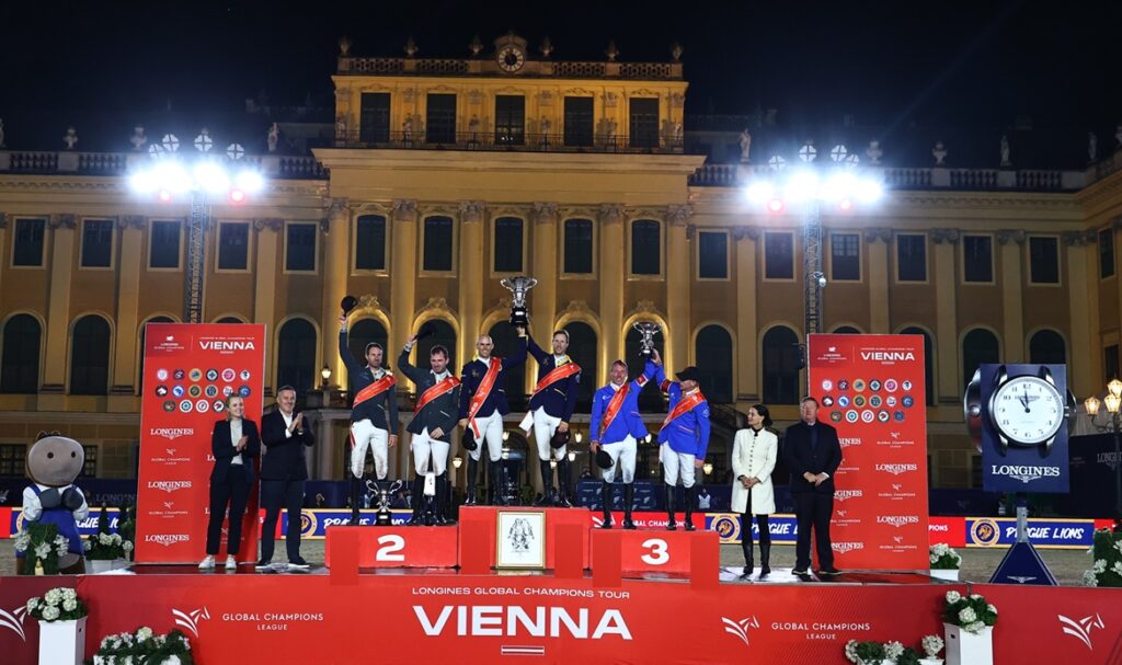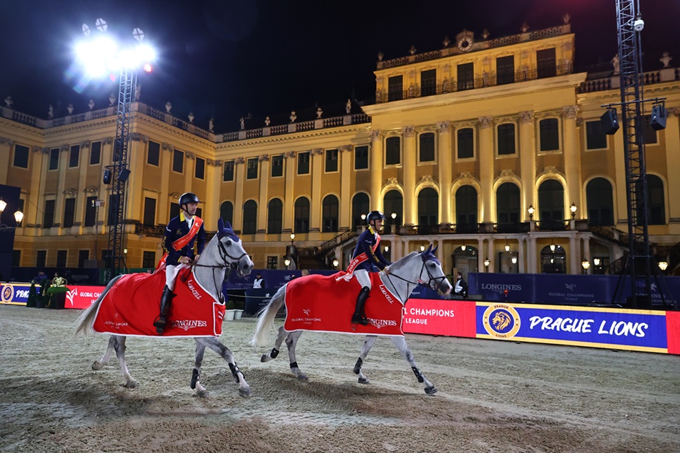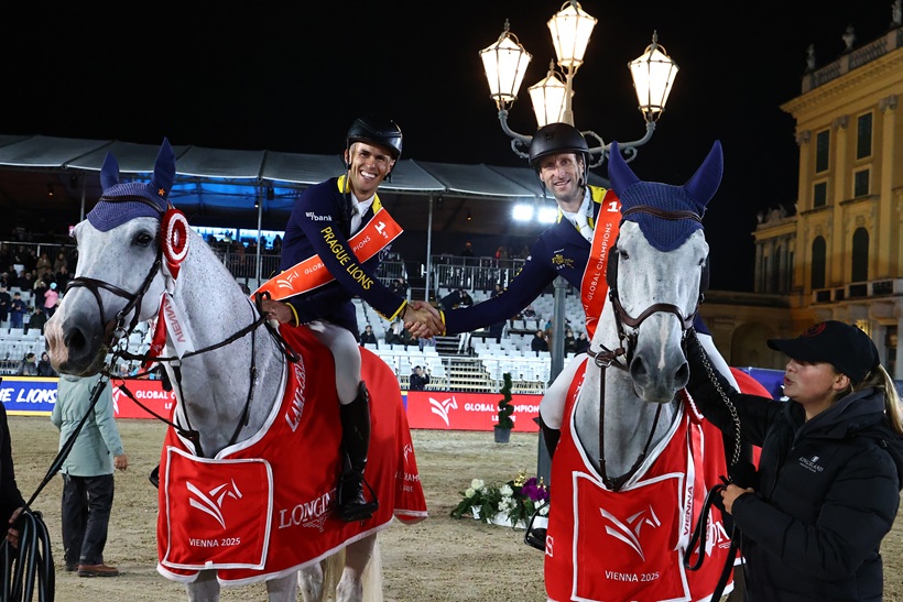 حقق فريق “براغ ليونز” لقب دوري الأبطال للفرق ضمن الجولة الثالثة عشر من جولات لونجين العالمية لأبطال قفز الحواجز التي تجري فعالياتها في العاصمة النمساوية فيينا بقصر شونبرون الشهير ،ومثل الفريق الذي حقق الصدارة للمرة الثانية هذا الموسم مع وصافة سابقة في جولة الدوحة كلا من الفارسان فرناندو مارتينيز على الجواد ” ليدي فان دي هارتيرهوف” ،وبيتر ديفوس على الجوادين ” بريمو دي في” و” جارينا جي” وحققا زمنا قدره 160.59 ثانية دون أخطاء وحازوا جائزة مالية قدرها 25 ألف يورو من إجمالي قيمة إجمالي الجائزة التي بلغت 200 ألف يورو،والتي تنافسي عليها 17 فريق يضم نخب فرسان العالم ،وأقوى مستويات الخيل .