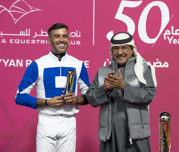 وعقب انتهاء الشوط قام السيد عبدالله راشد الكبيسي مدير إدارة السباقات بنادي قطر للسباق والفروسية بتتويج الفائزين، وتسلم الجائزة السيد خليفة بن شعيل الكواري مالك المهرة الفائزة باللقب