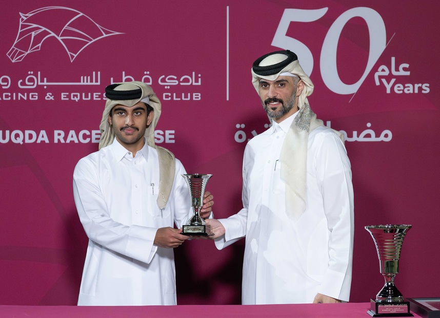 وهذا الانتصار يعد الثاني على التوالي للمالك والمدرب على مستوي حصد الألقاب، بعدما فاز أمس الأربعاء بكأس مسيعيد عن طريق الجواد “نصيب زاخر” .