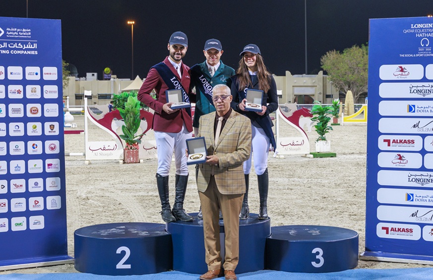 اختتمت اليوم السبت منافسات الجولة العاشرة لبطولة جولات قطر للفروسية لونجين هذاب في نسختها التاسعة، والتي ينظمها الاتحاد القطري للفروسية بالشراكة مع الشقب – عضو مؤسسة قطر بإقامة منافسات شوط فرسان المستقبل على ارتفاع 90 سم، ثم الجولة البرونزية على ارتفاع 120 سم للفردي والفرق، تلتها الجولة الماسية على ارتفاع 150 سم، وذلك في الميدان الرئيسي للاتحاد.