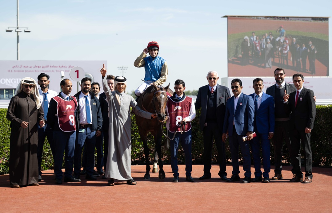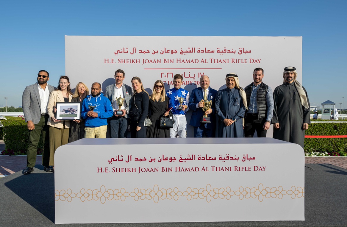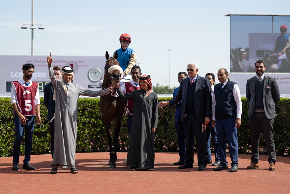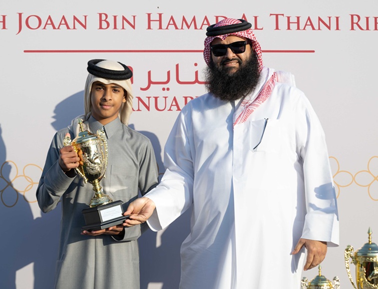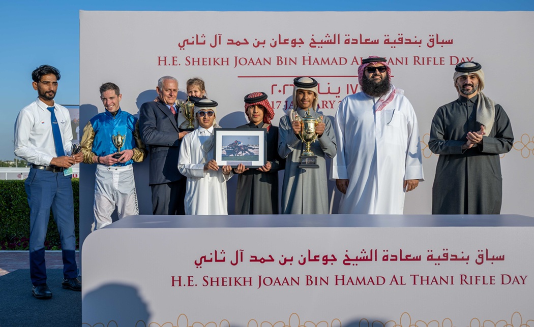 كما توج سعادة الشيخ جوعان بن حمد آل ثاني، رئيس اللجنة الأولمبية القطرية، الفائزين بجائزة سعادته من الفئة الثالثة للخيل العربية الأصيلة (الشوط التاسع)، وتسلم الجائزة الشيخ عبدالله بن تميم آل ثاني والشيخ الشيخ عبد العزيز بن جاسم آل ثاني، نيابة عن المالك الفائز وذنان ريسنغ مالك الجواد “ليبو دو كارير”، وذلك في حضور السيد راشد بن ناصر سريع الكعبي، نائب رئيس مجلس إدارة نادي قطر للسباق والفروسية، والسيد أحمد أمان الله الشيباني، نائب الرئيس التنفيذي لنادي قطر للسباق والفروسية.