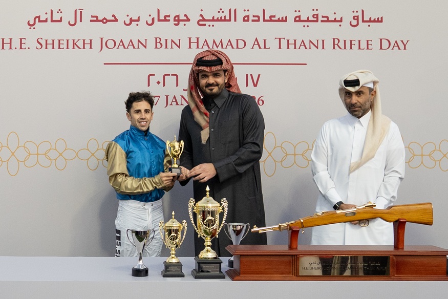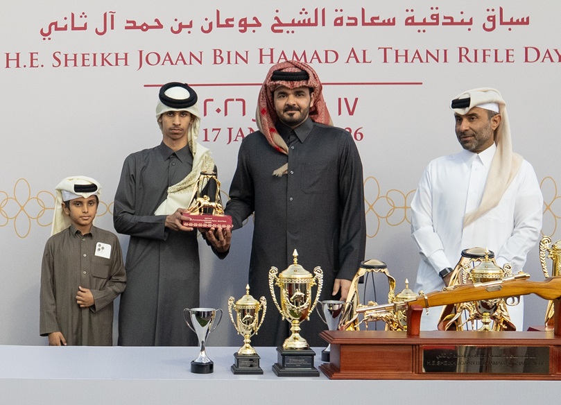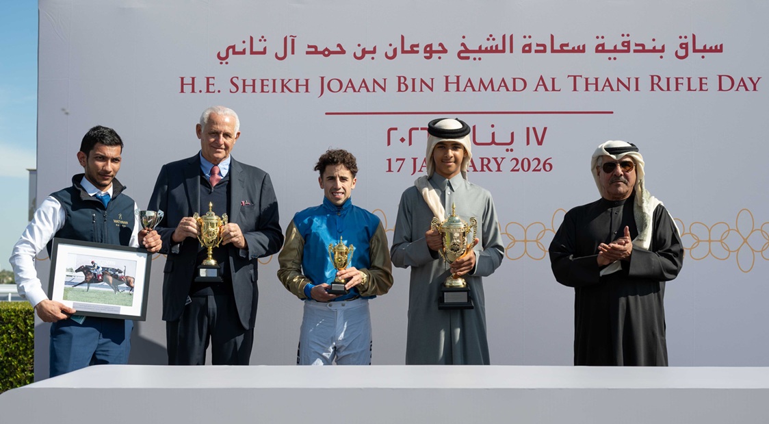 قام سعادة الشيخ جوعان بن حمد آل ثاني، رئيس اللجنة الأولمبية القطرية، بتتويج الفائزين بجائزة وبندقية سعادته، وكذلك أبطال بطولة ” السابق” التراثية التي أقيمت ضمن فعاليات السباق، وذلك في ختام هذا الكرنفال المميز الذي أقيم اليوم السبت 17 يناير 2026 على جوائز وبندقية سعادة الشيخ جوعان بن حمد آل ثاني على مضمار الريان العشبي بنادي قطر للسباق والفروسية من خلال 10 أشواط كانت مثيرة وقوية بين جميع المشاركين من الملاك والمدربين والخيالة خاصة مع الأجواء الرائعة التي شهدها السباق منذ بدايته وحتى الوصول إلى الشوطين الرئيسيين التاسع والعاشر.