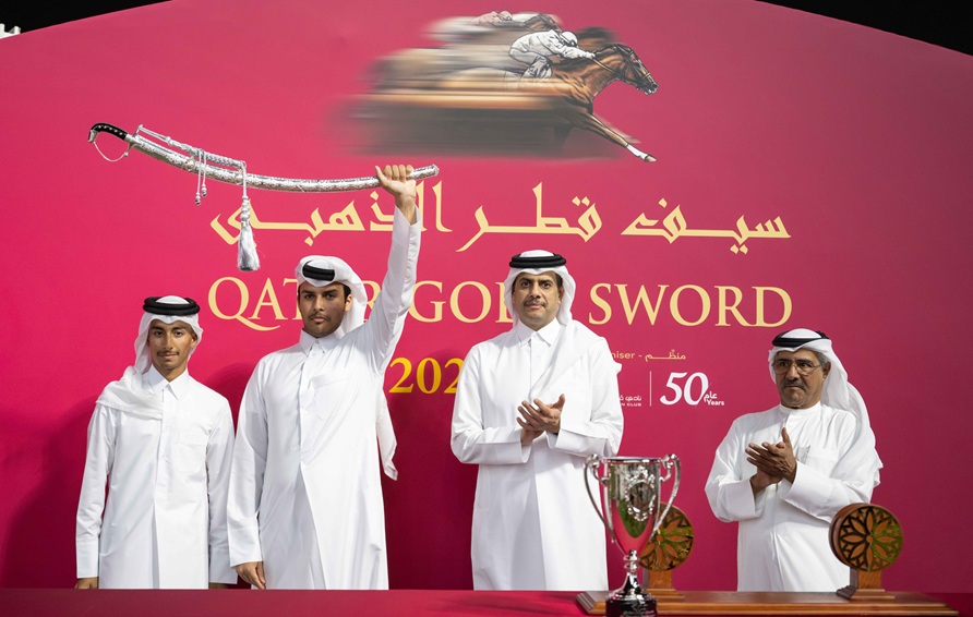 وتسلم سيف قطر الذهبي سعادة الشيخ جاسم بن تميم آل ثاني بعد فوز الفرس شديا (المرتجز × إرقية)، ملك وذنان ريسنغ، بالشوط والسيف، وقدمت الفرس الحمراء ذات الخمس سنوات أداءً قوياً للغاية فركضت بارتياح في مركز متوسط يتيح لها التقدم وقتما شاءت، وبالفعل اندفعت بقوة هائلة في آخر 300م وبسرعة مذهلة لتتجاوز منافسيها، وواصلت الاندفاع محققةً الانتصار بفارق عريض بلغ 3 أطوال ونصف، بإشراف المدرب ألبان دو ميول الذي أكمل بذلك ثلاثية من الفوز في السباق الكبير، وبقيادة الخيال سفيان سعدي.