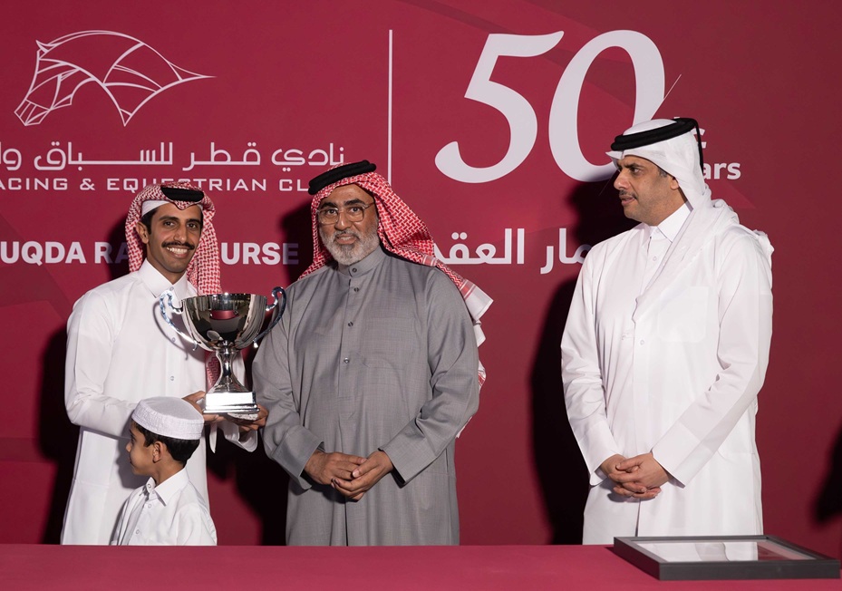 في الشوط الرئيسي السابع على كأس المغفور له إن شاء الله الشيخ علي بن فالح آل ثاني للخيل المهجنة الأصيلة، شوط مشروط، 3 سنوات فما فوق، 2100م، توج سعادة الشيخ محمد بن فالح آل ثاني الفائزين بالكأس، وذلك في حضور السيد حمد بن عبدالرحمن العطية، رئيس مجلس إدارة نادي قطر للسباق والفروسية، وتسلم الكأس المدرب الفائز محمد حمد خليفه العطيه نيابة عن المالك مربط الجريان بعد فوز الجواد “عافور” (قربان × فلفلة) بالكأس بأداء متميز خاصة في المراحل الأخيرة وإحرازه الفوز بفارق مريح بقيادة الخيال شتيبان مازور.