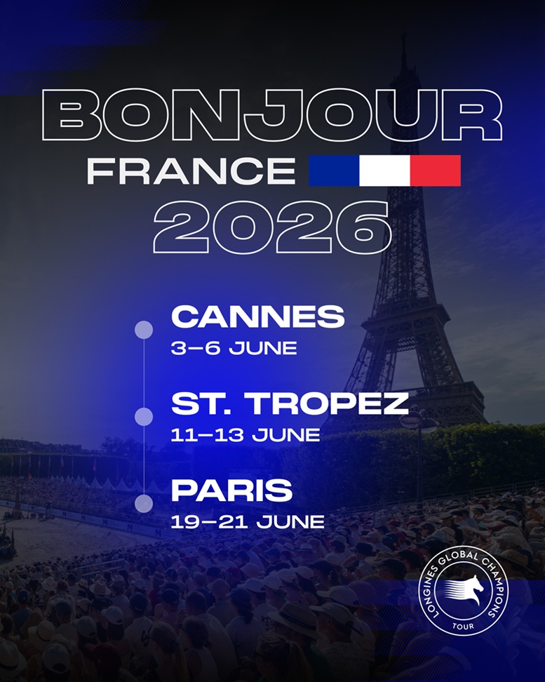أعلنت لونجين العالمية لأبطال قفز الحواجز عن عودتها إلى فرنسا الموسم القادم في عام 2026 بثلاث وجهات مميزة، تستضيف أفضل خيول وفرسان قفز الحواجز في العالم في ذروة أشهر الصيف على الريفييرا الفرنسية وفي قلب العاصمة باريس .