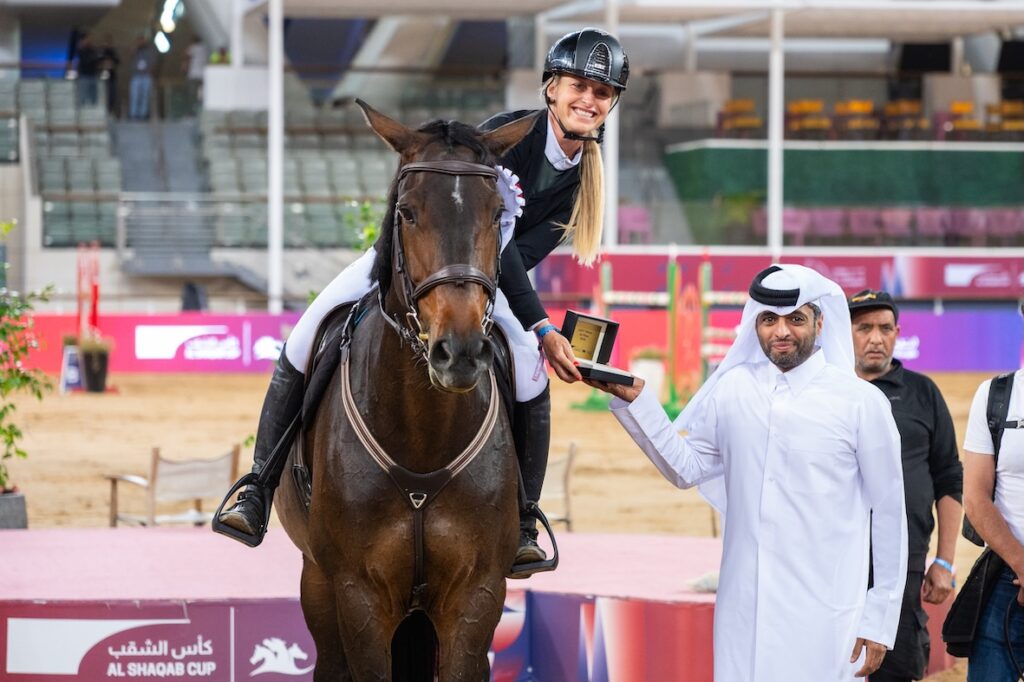 وفي آخر أشواط اليوم لفئة الخمس نجوم على ارتفاع 150 سم، توجت الأمريكية كريستين فاندرفين بلقب الشوط بتحقيقها زمنا قدره 63.31 ثانية على الجواد بل رانز ماري، تلاها ثانيا الفارس الجنوب إفريقي ماثيو ماريسون بزمن قدره 68.17 ثانية على الجواد كويبك، في حين جاء في المركز الثالث السوري محمد مغيث الشهاب بـ 68.79 ثانية على الجواد جاغوار. قام بتتويج الفائزين السيد لحدان البوعينين، مدير الميادين في البطولة.