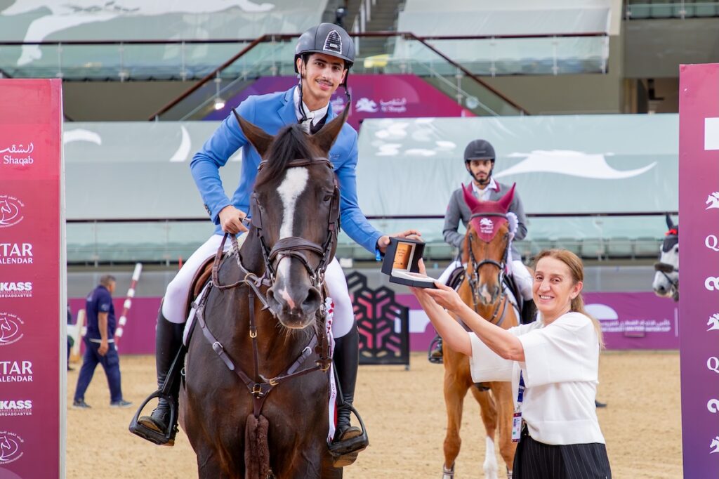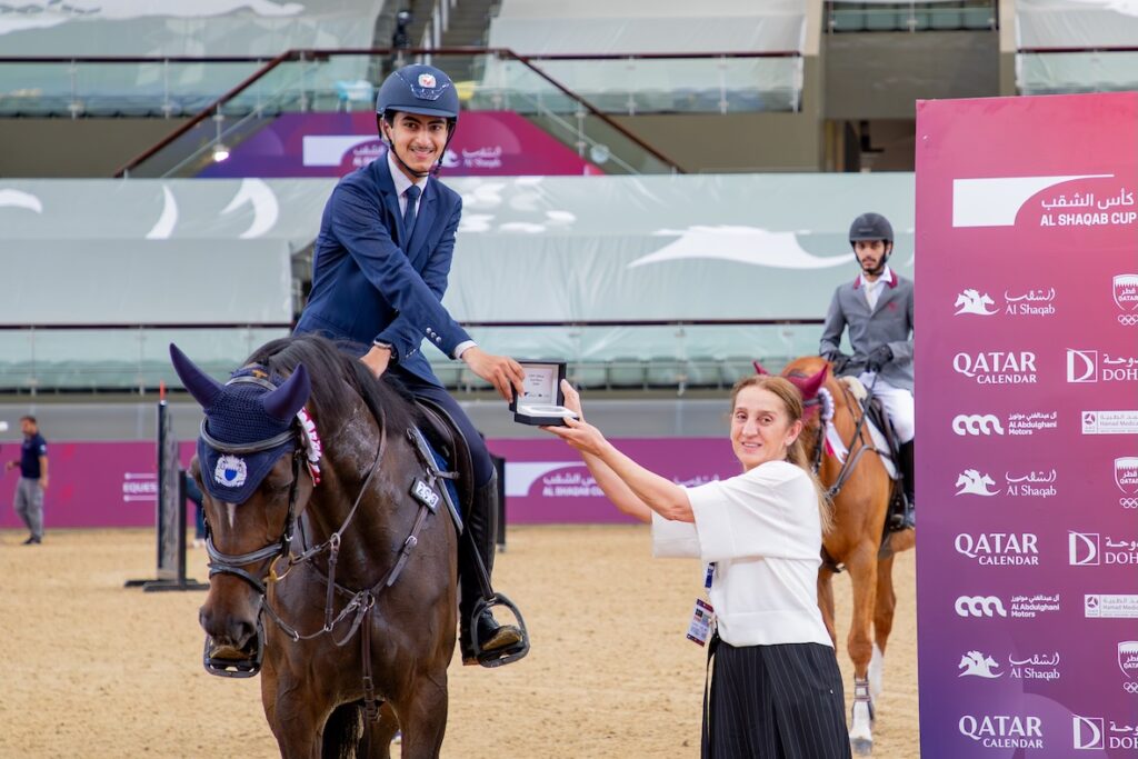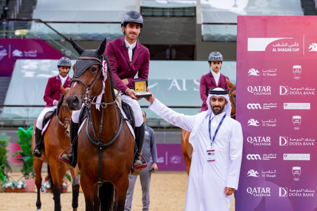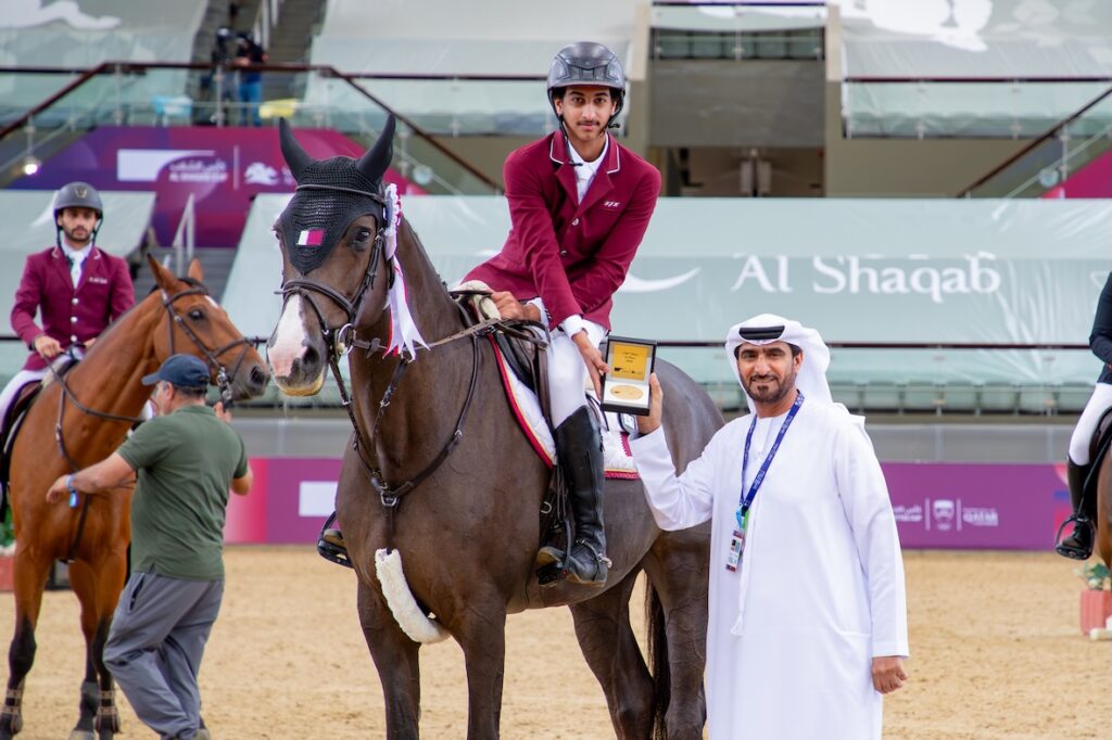 وفي شوط فئة الناشئين على ارتفاع 125 سم، توج الفارس محمد بن جاسم آل ثاني بالمركز الأول بتحقيقه زمنا قدره 38.13 ثانية على الجواد جراني، تلاه البحريني سلطان عبدالعزيز الرميحي بـ 40.91 ثانية على الجواد جوهيليز، في حين جاء في المركز الثالث الفارس الكويتي مدحي الخميس بزمن قدره 41.27 ثانية على الجواد كاش ميكر. قامت بتتويج الفائزين ندار المصري، عضو لجنة التحكيم.