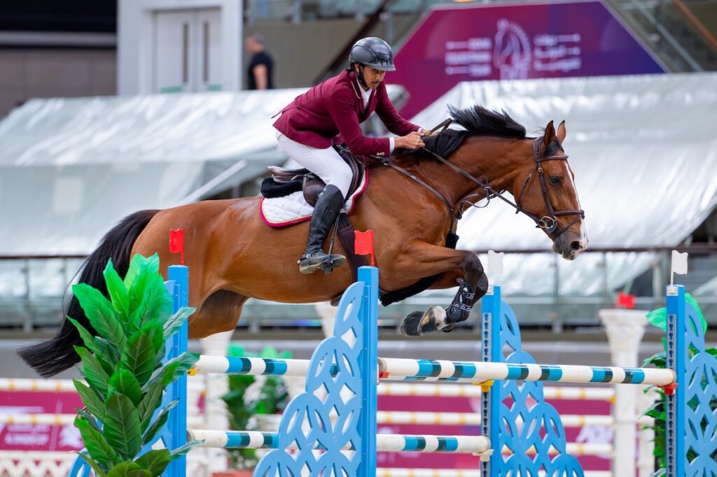 وفي أولى أشواط الخمس نجوم على ارتفاع 145 سم، توج الفارس القطري باسم محمد بالمركز الأول بزمن قدره 34.44 ثانية على الجواد وذنان تشاك بال، تلاه مواطنه فالح سويد العجمي في المركز الثاني بزمن قدره 35.67 ثانية على الجواد وذنان كواليتي ستريت، في حين جاء في المركز الثالث الفارس السوري محمد مغيث الشهاب بـ 36.78 ثانية على الجواد سافير زي. قام بتتويج الفائزين السيد سالمين السويدي، المدير الرياضي للبطولة.
