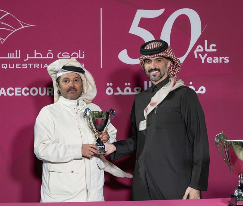 عقب انتهاء الشوط قام السيد راشد سعيد عضيبه، رئيس قسم تنظيم السباقات بنادي قطر للسباق والفروسية، بتتويج الفائزين بكأس مسيعيد.