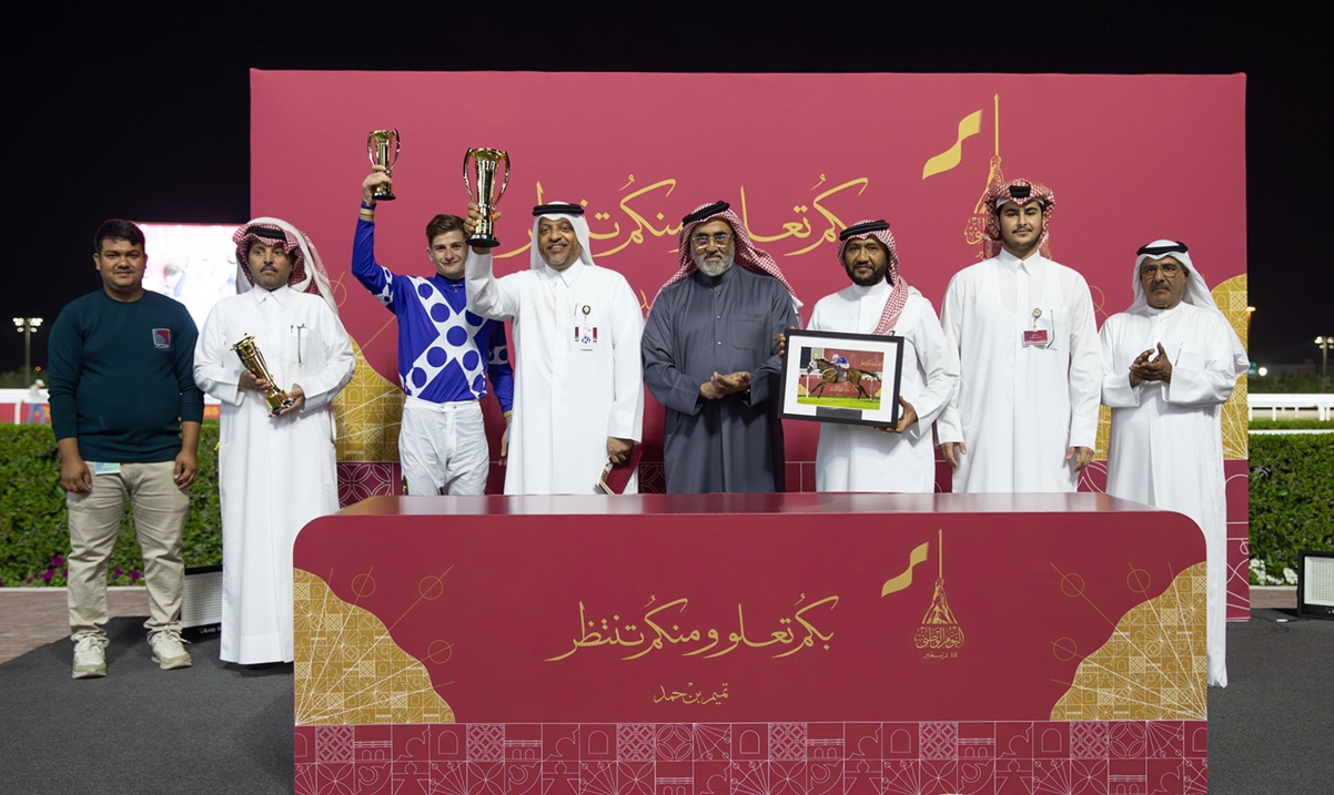 قام سعادة الشيخ حمد بن خليفة بن أحمد آل ثاني، وزير الرياضة والشباب، بحضور السيد راشد بن ناصر بن سريع الكعبي، نائب رئيس مجلس إدارة نادي قطر للسباق والفروسية، بتتويج الفائزين بجائزة اليوم الوطني وجائزة المؤسس الشيخ جاسم بن محمد بن ثاني (طيب الله ثراه)، الذي أقيم اليوم السبت 13 ديسمبر 2025 على مضمار الريان العشبي من خلال 9 أشواط بينهم الشوط الثامن على جائزة اليوم الوطني والشوط التاسع على جائزة المؤسس.