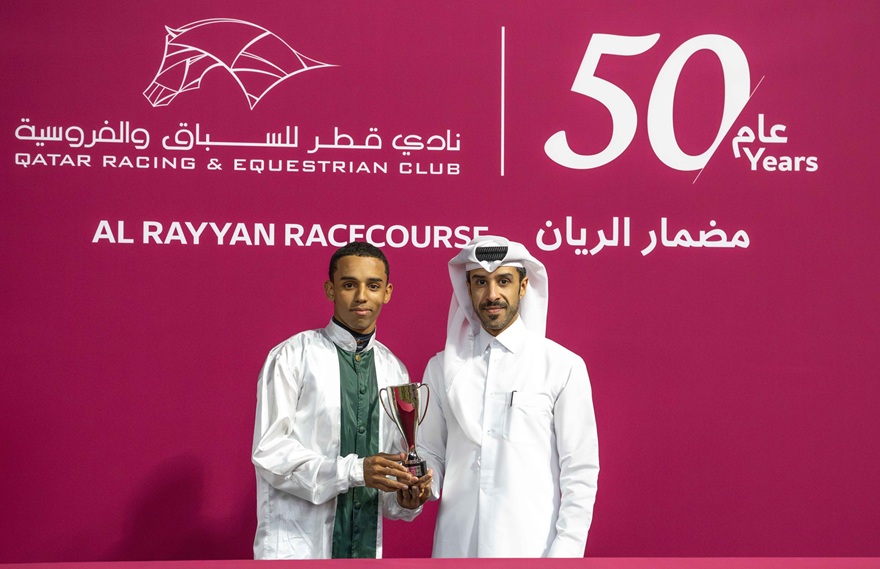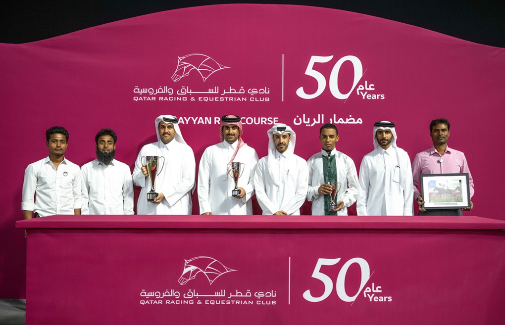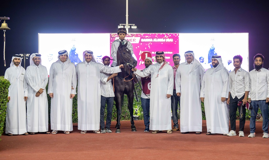 Maraaheb (Sottsass x Silver Rain) landed the opening race, a Thoroughbred Maiden Plate over 2000m (Class 6) for four- to seven-year-olds, in an 11-runner contest, drawing clear by 1½ lengths. The four-year-old chestnut gelding, racing for Khamis Ali Khamis Al-Sulaiti, is trained by Hadi Al Ramzani and was partnered by Alberto Sanna. He was rewarded for a string of consistent efforts, having finished runner-up on several recent occasions, as he shed his maiden tag at the 20th attempt.