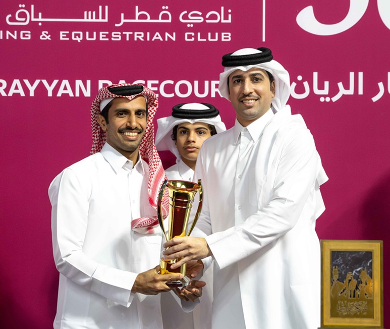 Al Rayyan staged the 64th race meeting of the season on Thursday, 9 April, with a bumper ten-race card on turf, headlined by The Late Yousef Al Romaihi Cup, which was presented by Ali, Fahad and Mubarak Yousef Al Romaihi in the presence of Saad Ali Al Kubaisi, Deputy Director of the QREC Registration & Studbook Department.