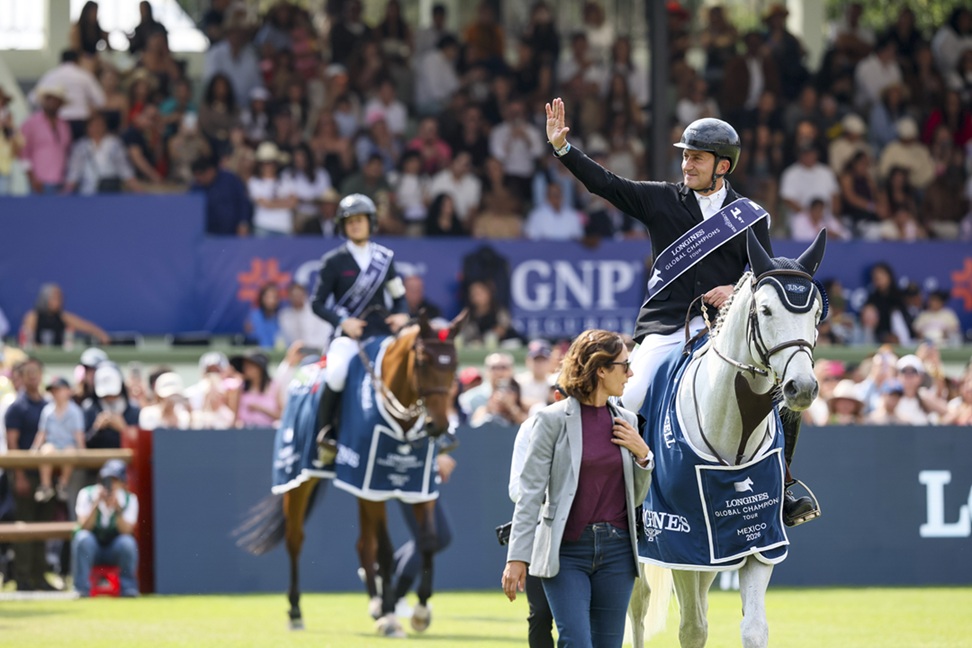 The €437,200 Longines Global Champions Tour Grand Prix of Mexico City presented by GNP Seguros delivered a blockbuster headline at Campo Marte, as Piergiorgio Bucci rose to the occasion with a performance of speed, instinct and precision. Riding Pallieter vd N.Ranch, the Italian stormed to victory in a blistering jump-off time of 43.68 seconds, securing back to back LGCT podiums and etching his name into one of the standout moments of the 2026 season.